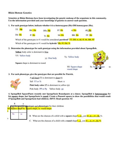 Download PDF Online bikini bottom genetics codominance answer key Free PDF PDF
